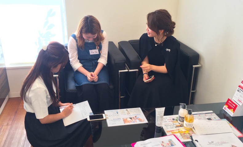 今日はまつ毛エクステの新入社員のロープレ勉強会をしてもらっています。