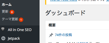 テーマの更新なんかは自動更新はないみたいなので、自分で更新しないとダメなんですよね。