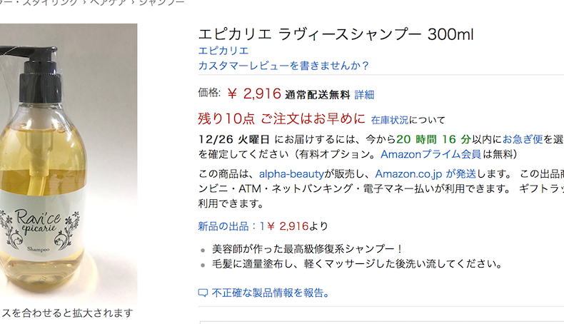 [blogcard url=”https://www.amazon.co.jp/エピカリエ-ラヴィースシャンプー-300ml/dp/B078GR13GD/ref=sr_1_1?ie=UTF8&qid=1514177089&sr=8-1&keywords=ラヴィース”]
