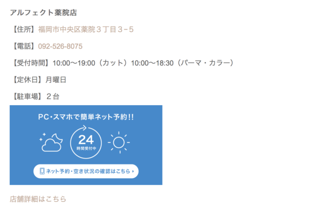 24時間のネット予約を取れる、自社の予約サイトのリンクを付けて、