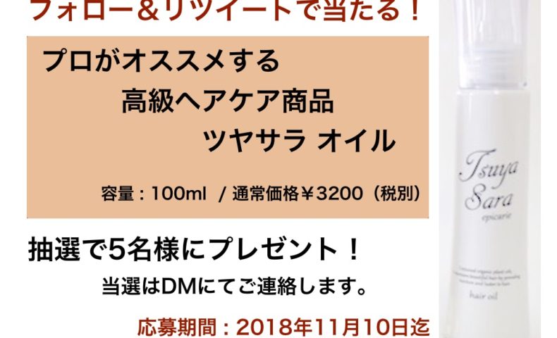 こだわりのヘアケア商品【ツヤサラオイル】を抽選で5名様にプレゼント!