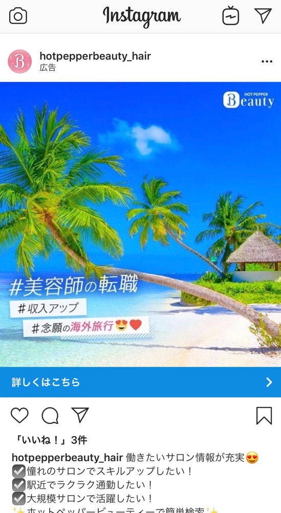 そんな感じで見てたから掲載してなかったんだけど、先日インスタ見たらホットペッパービューティが転職の広告をうってた!!