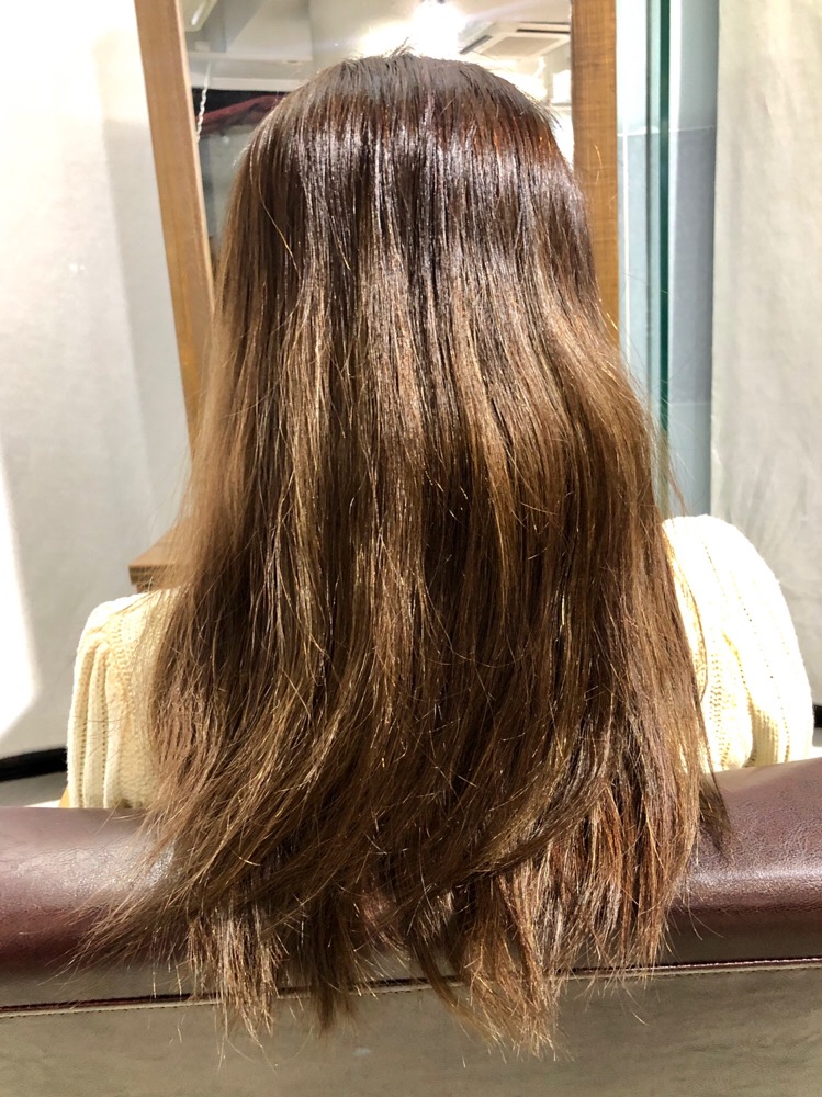 ツヤツヤでしっとり感もあり、この後にカラーで色を入れたら問題ないな〜